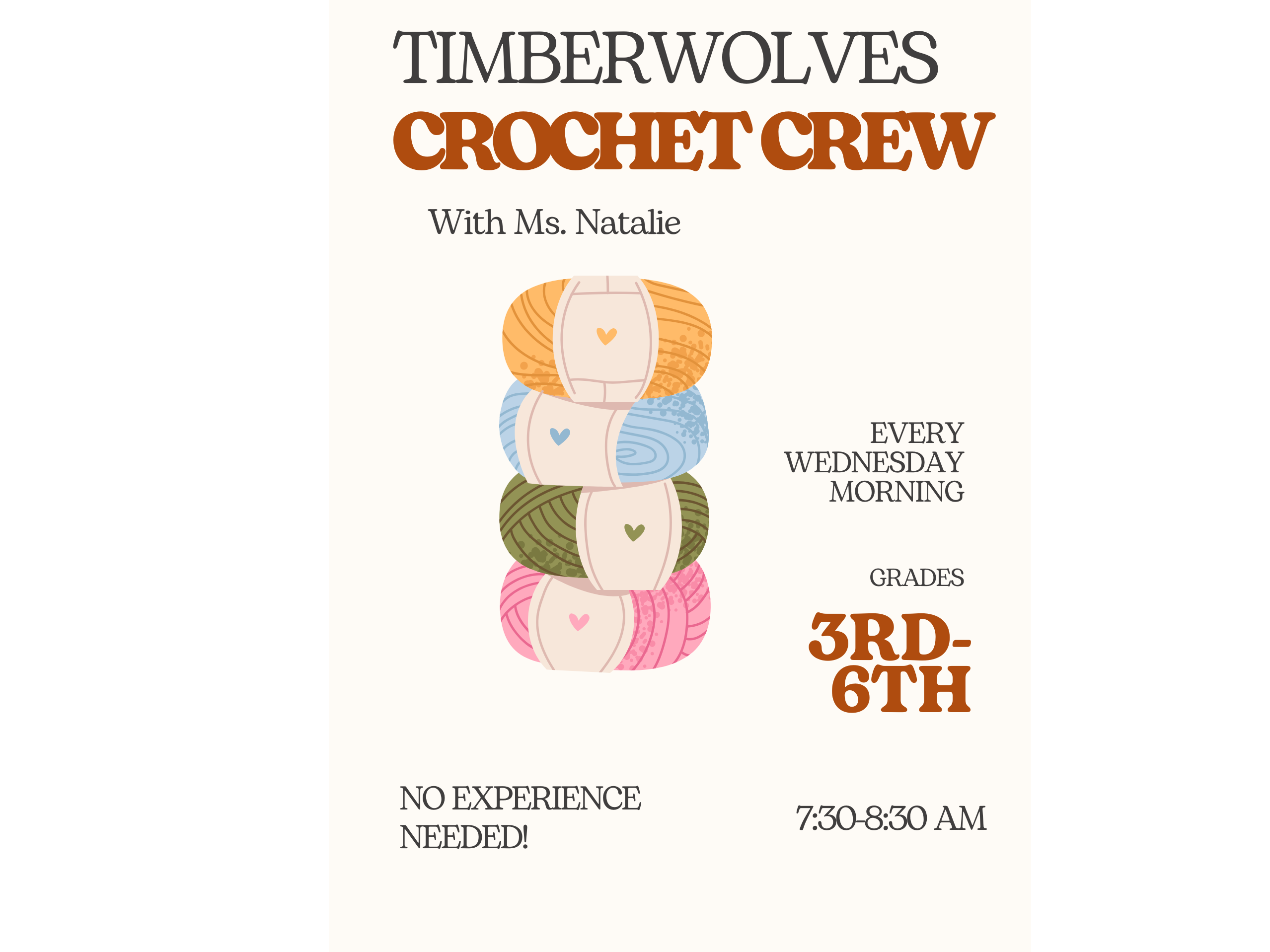 Start your crochet journey with us! Students will learn the basics of yarn, hooks, and stitches through easy, guided projects. A warm and welcoming club for all skill levels!
